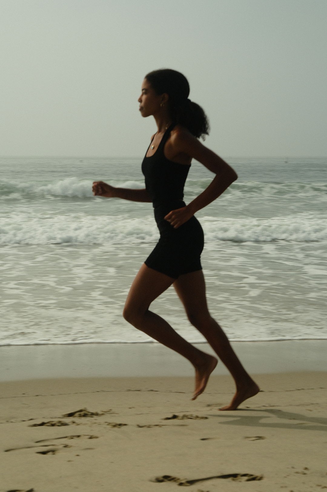 High-rise, body-hugging fit; mid-length inseam; holds shape through natural merino structure.